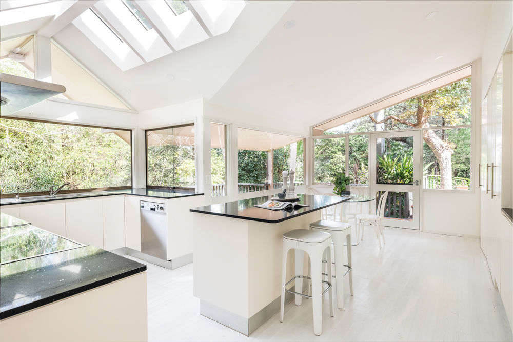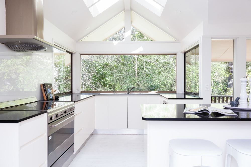 North light…and plenty of it. Raked ceilings. Glass…also lots of it. Open plan.
